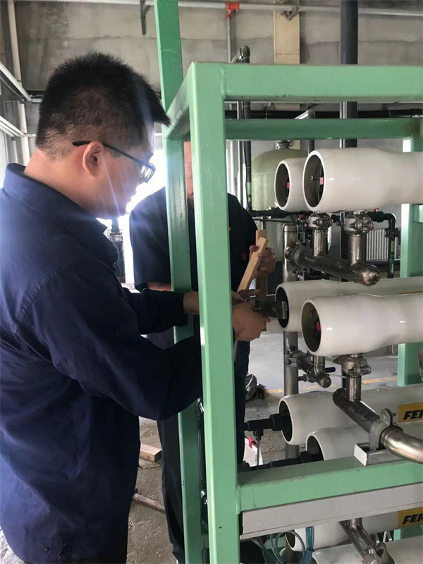 撫順某紙廠有一套10噸一級二段的反滲透設備,由于現場負責人員對反滲透設備了解不是很多,導致該設備運行不到半年產水量急劇下降、濃排量也大量減少、電導率急劇升高至50μs/cm,咨詢幾家清洗公司都建議離線清洗或更換新膜。由于考慮到生產,廠家希望能夠在線清洗先維持生產。了解這種情況后,我們技術人員上門進行了深度檢測,分析膜結構污堵的具體情況,針對不同垢型在不同時間節點進行專項分解。由于濃水通道污堵嚴重,導致清洗液循環效果不好,所以在線清洗難度很大,后來我們的清洗人員大膽嘗試高壓水配合沖洗。在不同方法的結合下,恢復了設備的正常運行,電導率也下降很多,更好的提高了產品質量。這一套設備的清洗成功,對行業的清洗技術有一個新的突破,希望在以后的道路上我們能夠幫助更多的客戶解決不同的問題。